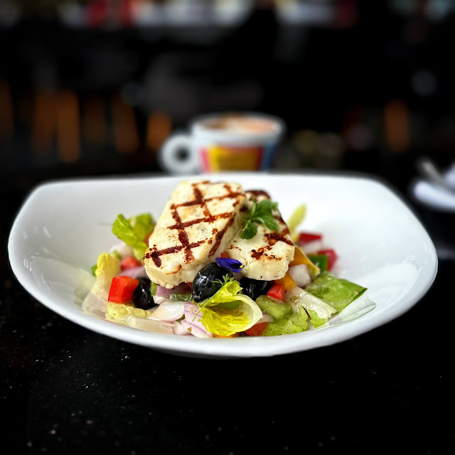 另外這一客希臘沙律配烤哈羅米芝士真的非常特別, 那件像雞胸肉的原來叫哈羅米芝士,來自塞浦路斯神話般的芝士,這個芝士質感奇趣用來烤亦不會溶化,吃下非常有咬口而且味道鹹香口感非常特別。