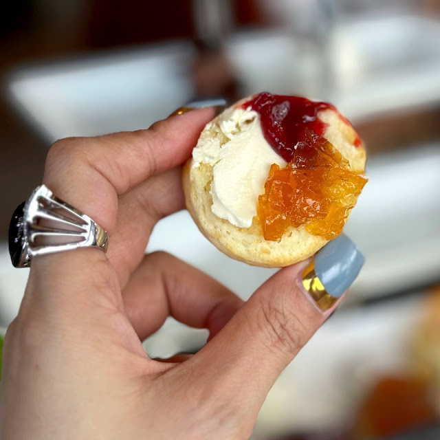 嘆英式下午茶Scone真的非常重要!這兒的提子鬆餅乾濕度弄得不錯,塗上Clotted Cream及果醬總算味美。