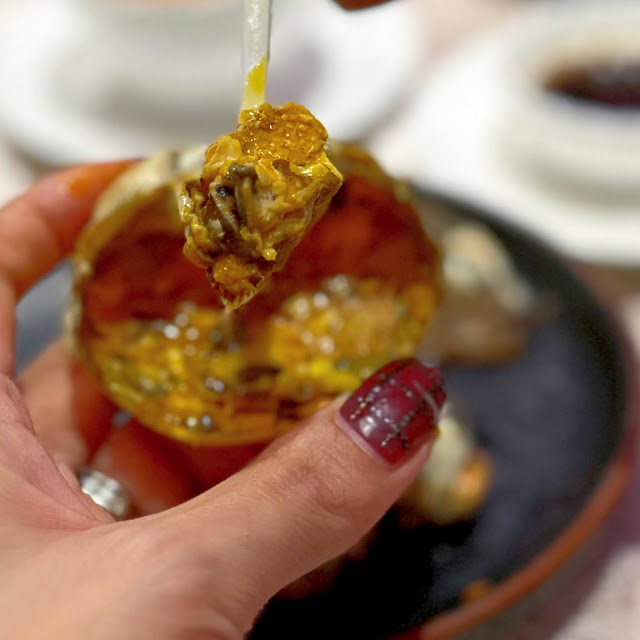 拆好了蟹腳後終於要揭盅了!打開蟹蓋看見滿滿豐腴的白膏及蟹黃真的十分興奮。